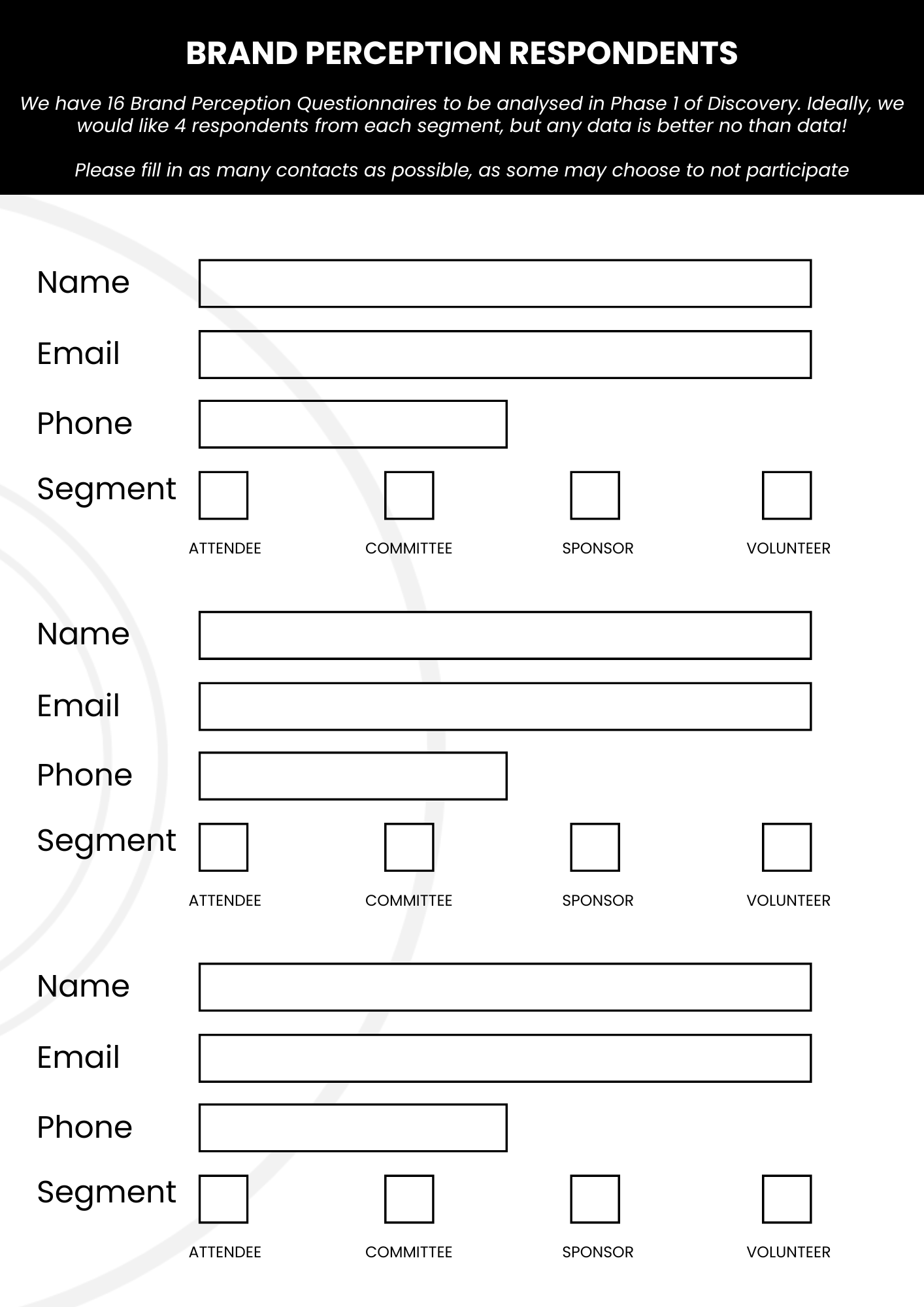 We will respond with the template emails to introduce ourselves and the questionnaires. Each questionnaire will be largely the same, with specific questions targeted to each segment for additional data.